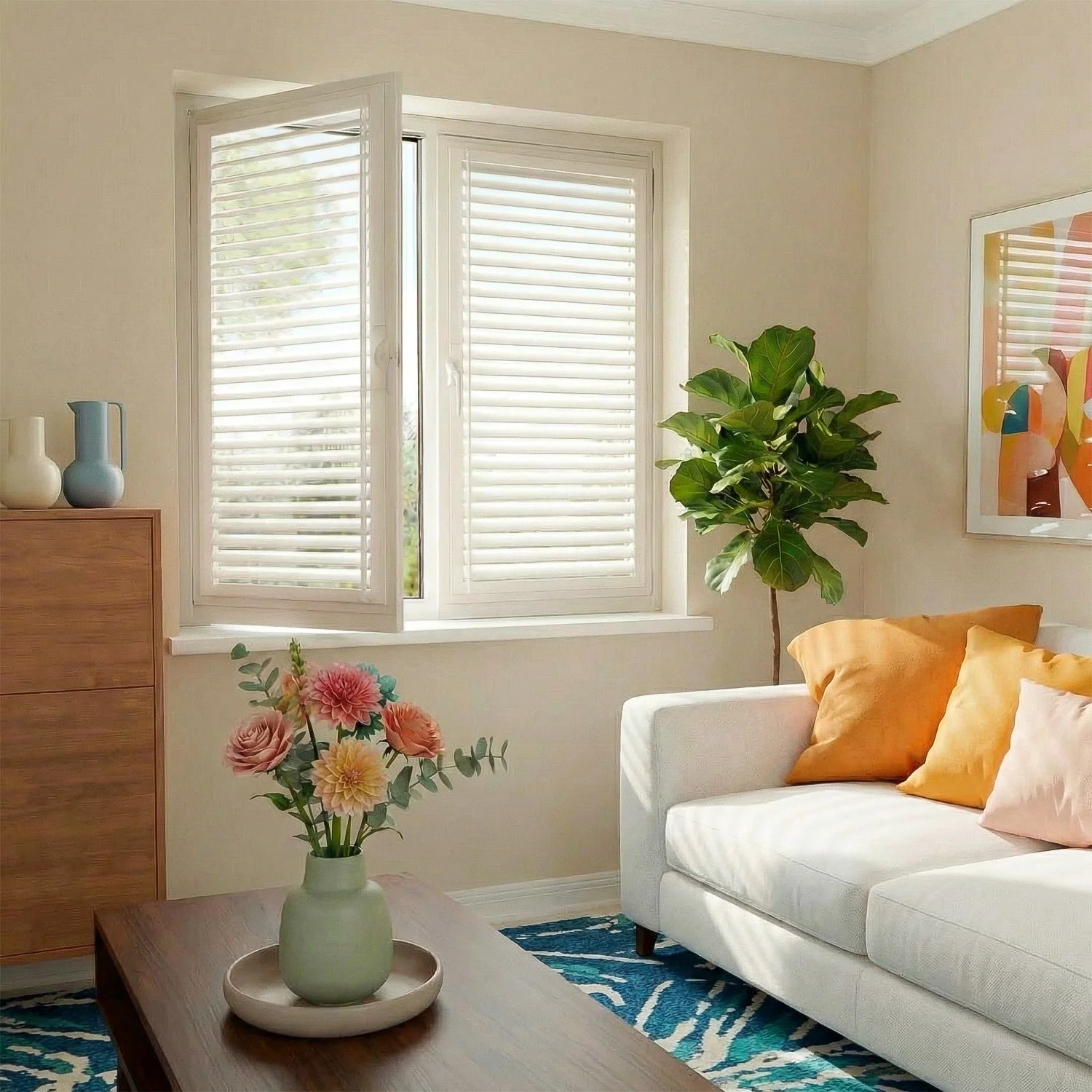 Arctic White is the brighter of our two shutter colours — a clean, true white with no warm or yellow undertones. It works particularly well with newer uPVC window frames and contemporary or minimalist interiors where you want the shutters to make a confident visual statement. It's also a popular choice for conservatories, where strong natural light would wash out a softer white.