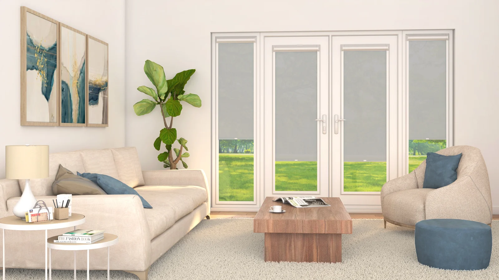 Keep your view, lose the glare. Our 3% screen Perfect Fit roller blinds are made to measure and snap cleanly into your uPVC window or door frame with no drilling required, filtering harsh sunlight while preserving your outlook and keeping your room feeling open and connected to the outside. An ideal choice for living rooms, home offices, and conservatories where glare is a problem but the view is worth keeping.