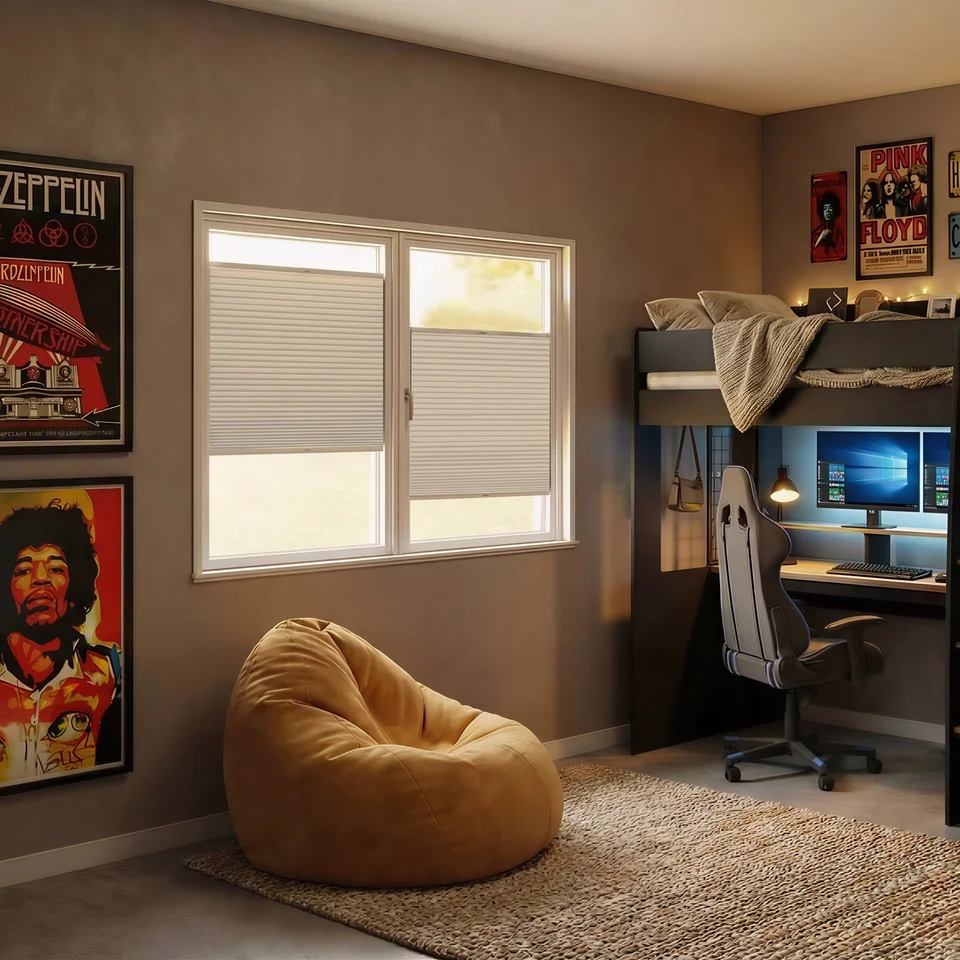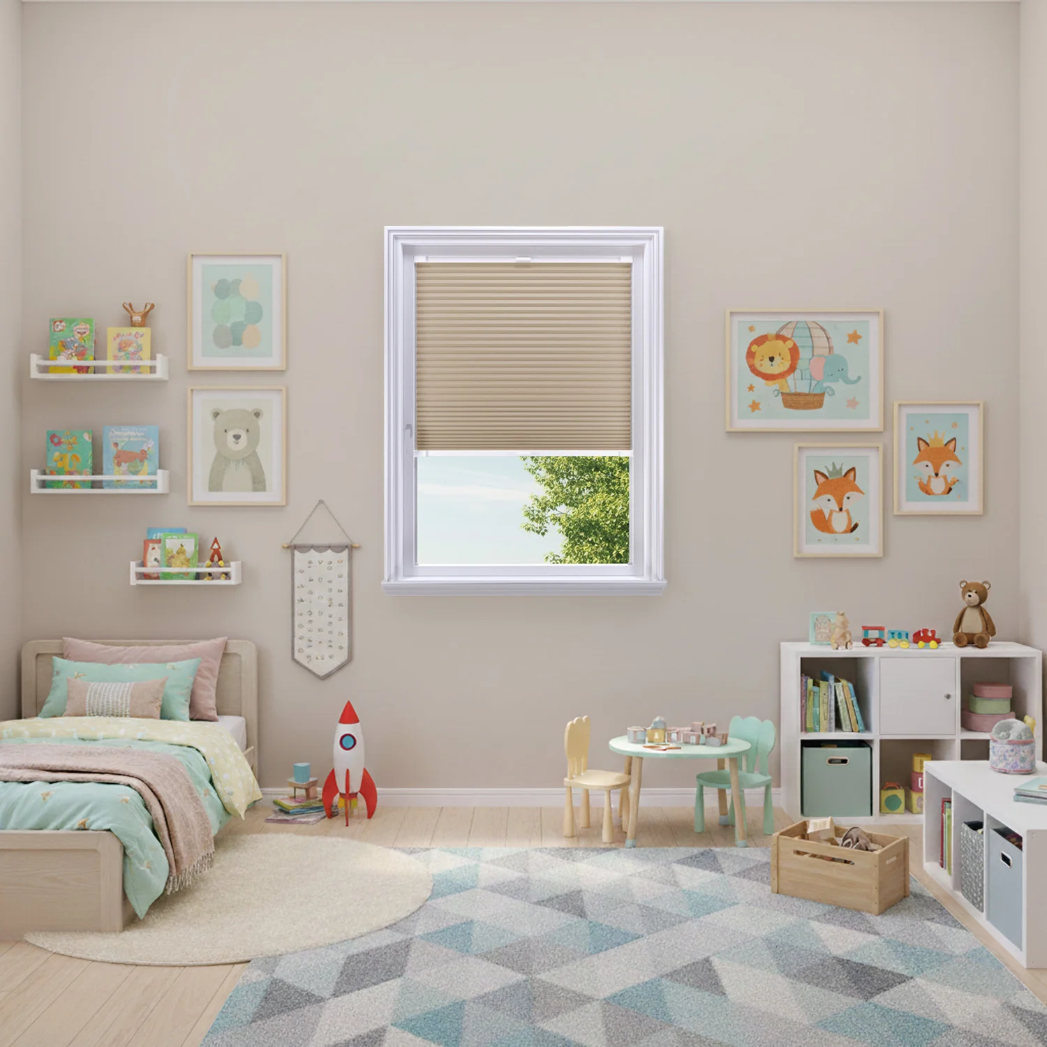 Because stick-on cellular blinds are cordless, they are the ideal choice for children's bedrooms, nurseries, and playrooms. You can position furniture, including beds and cots, anywhere near the window without safety concerns. The simple push-and-pull mechanism is safe for children to use under supervision, helping them learn independence while remaining completely secure.