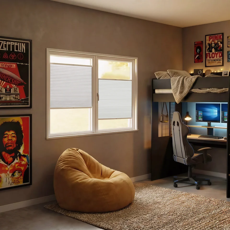 Because stick-on cellular blinds are cordless, they are the ideal choice for children's bedrooms, nurseries, and playrooms. You can position furniture, including beds and cots, anywhere near the window without safety concerns. The simple push-and-pull mechanism is safe for children to use under supervision, helping them learn independence while remaining completely secure.