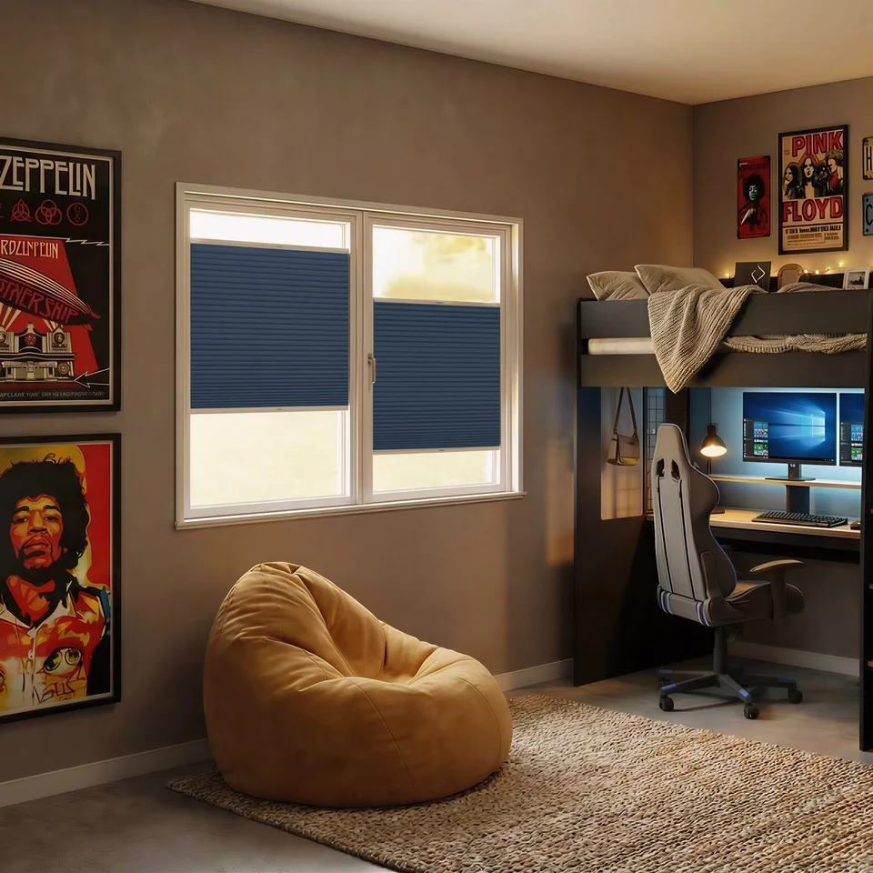 Unlike light-filtering cellular blinds, CosiBLOC Navy features specialist blackout honeycomb cells with light-blocking properties throughout the entire fabric structure. When fully closed, these blinds dramatically reduce room brightness by preventing light from passing through the fabric, effectively blocking out street lights, early morning sun, and external illumination. The result is a bedroom environment conducive to deep, restorative sleep, particularly beneficial for shift workers, light-sensitive sleepers, or creating optimal nap conditions for young children.