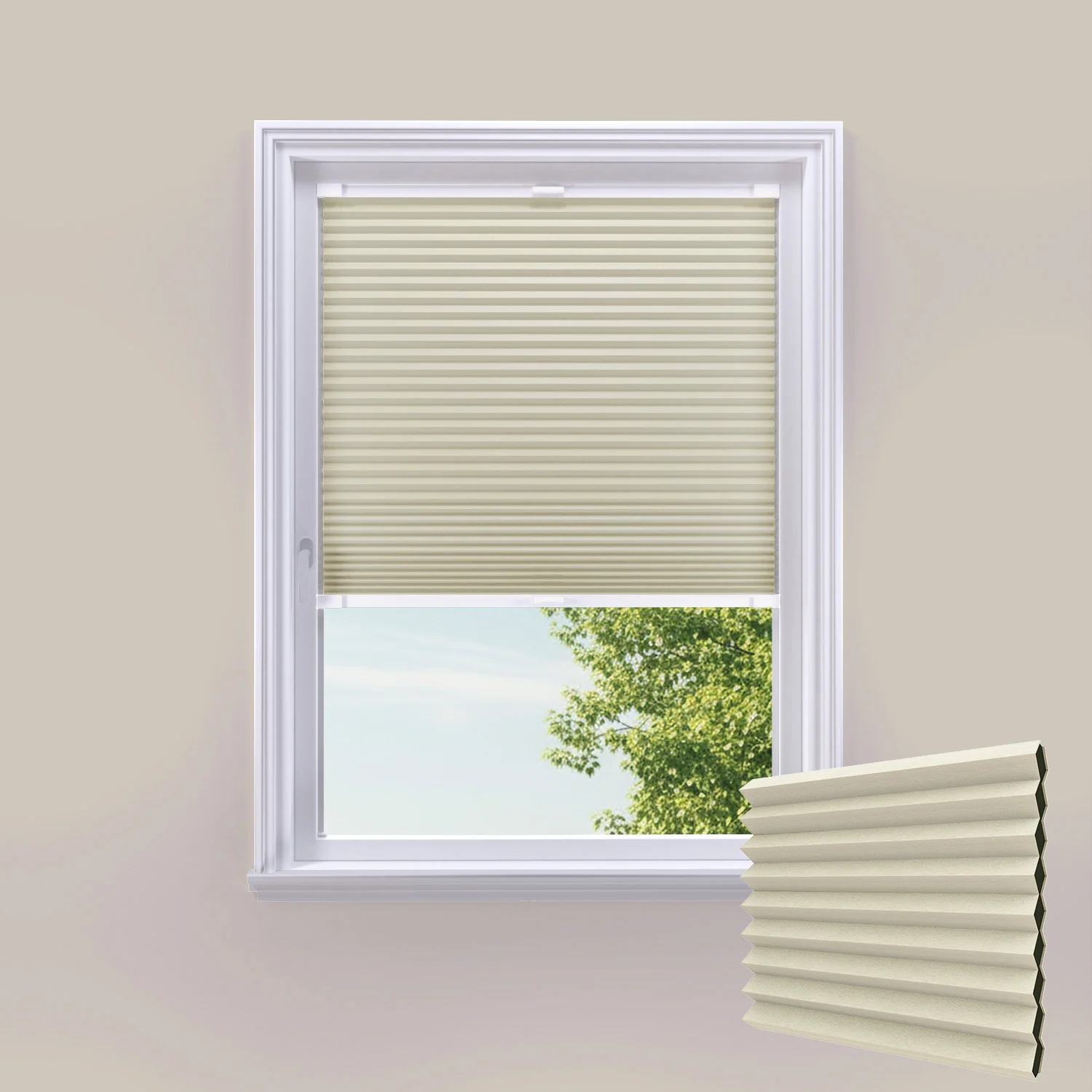 Experience exceptional light control with organic warmth through CosiBLOC Sand stick-on cellular blackout blinds. Combining soft sand tones with blackout fabric technology, these innovative honeycomb blinds install in minutes without drilling, offering superior room darkening for peaceful sleep while maintaining excellent thermal efficiency and complete child safety.