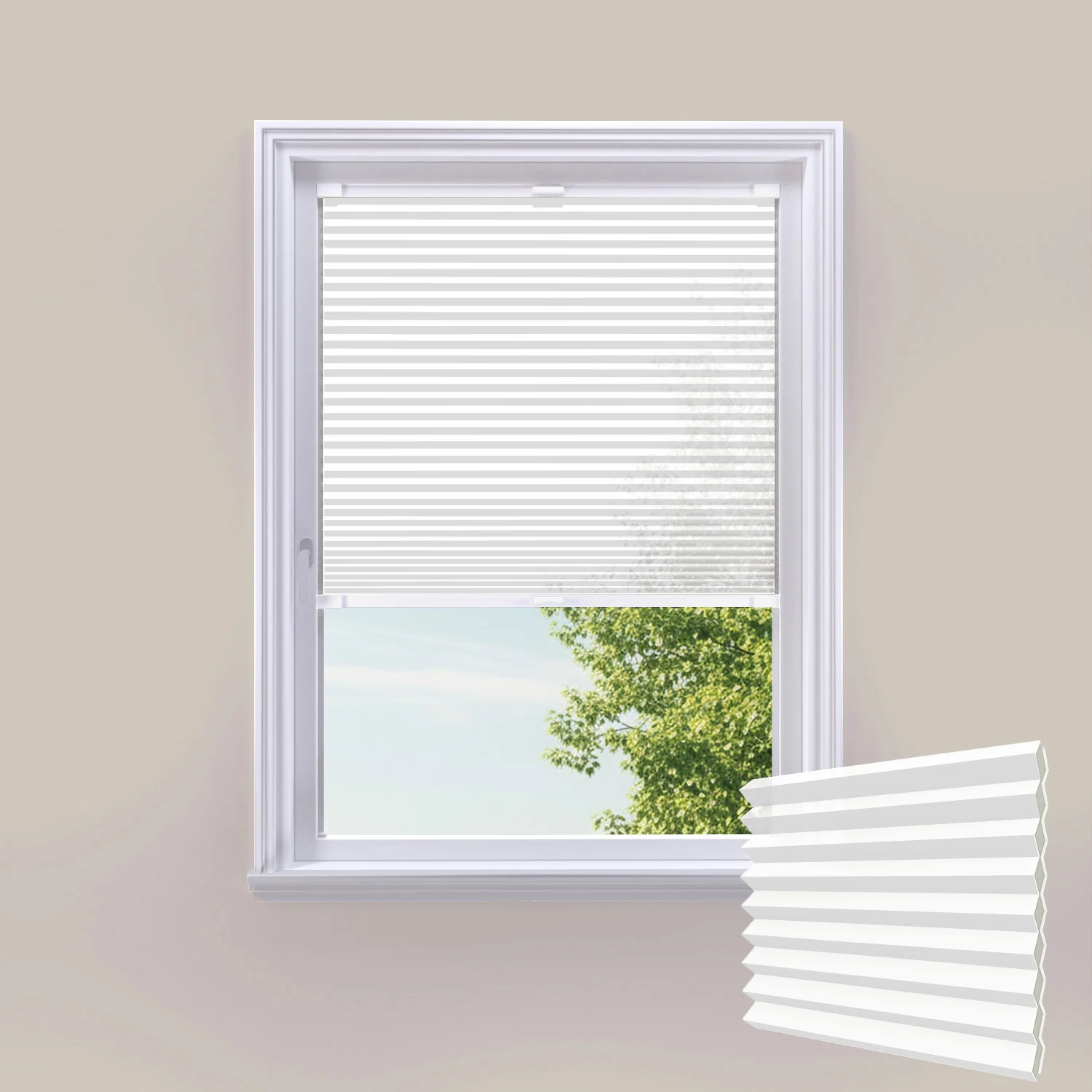 Transform your windows with CosiSHADE White stick-on cellular blinds. No drilling required, completely child-safe, and ideal for any window or door. Energy-efficient honeycomb design with superior privacy control and crisp white finish.